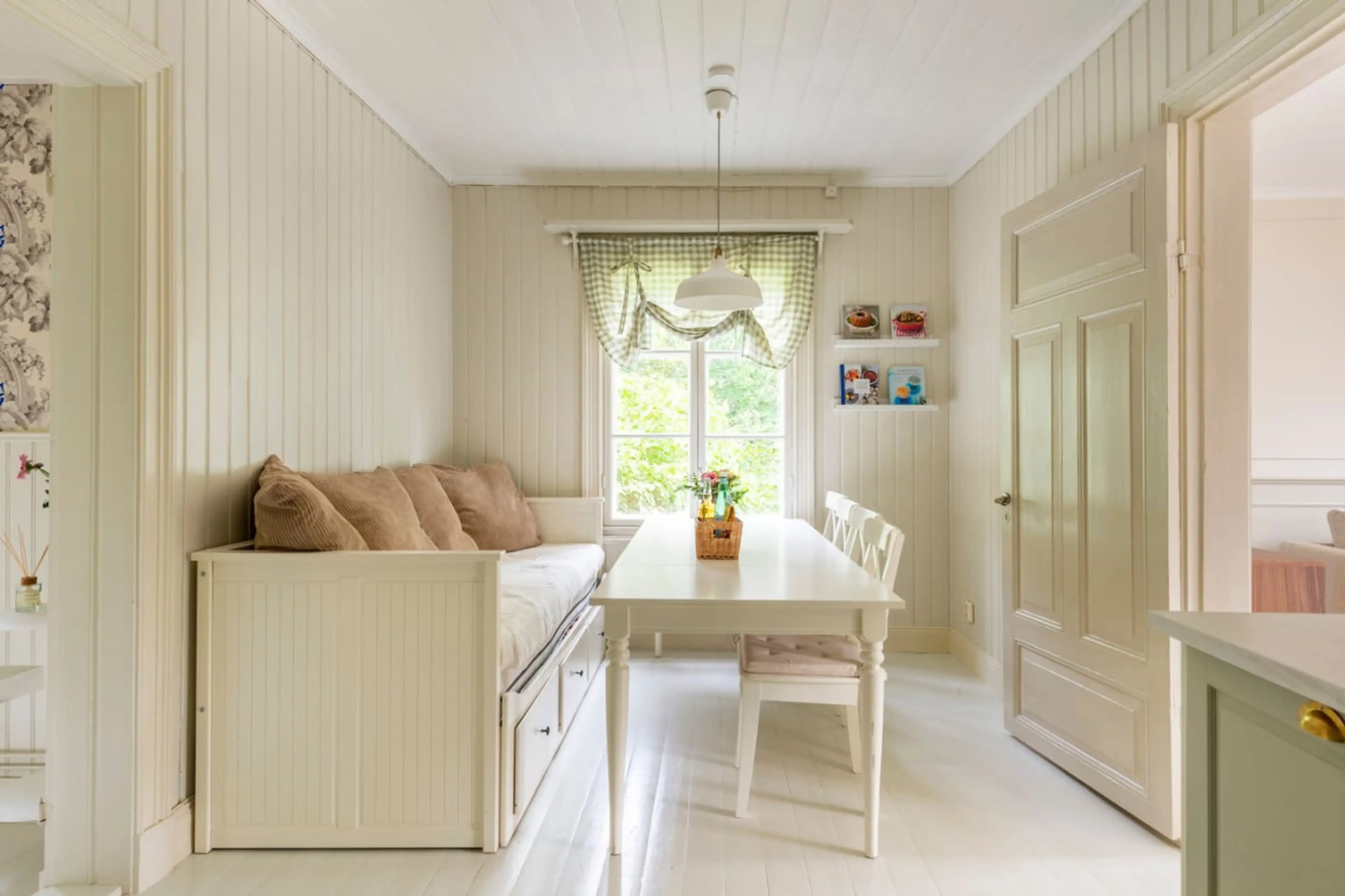 Nyrenoverad lägenhet i söderläge i en stor k-märkt villa från 1878 alldeles intill vattnet. Balkong med sjöutsikt. Våningen är 90 kvm stor och fungerande kakelugnar i alla rum. Totalt finns det 12 bäddar och är lätt att anpassa för familjer eller vänner. Lägenheten är i ett lugnt och centralt områd...